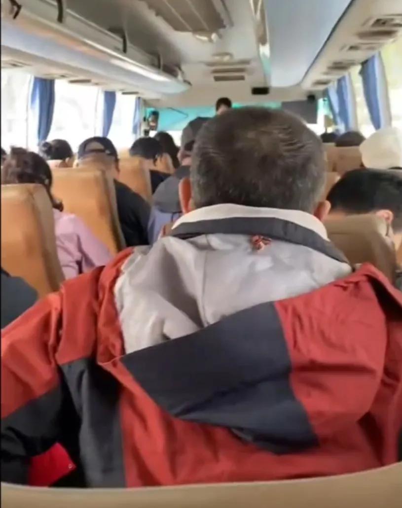 而在路上,因为商品推销的问题,大爷大妈们跟导游在车上一番吵架。