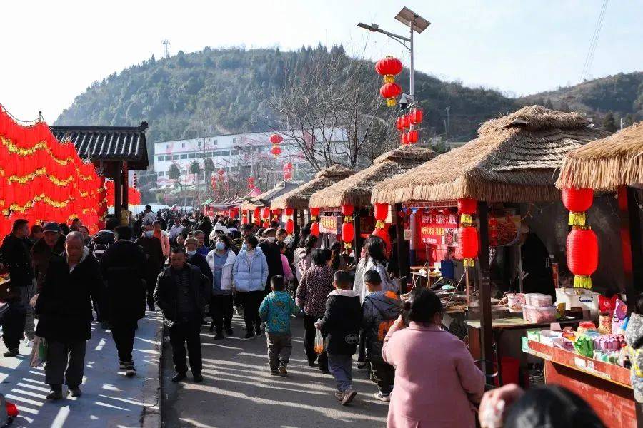 春节期间,金华镇翁井村热闹的小吃街吸引众多游客