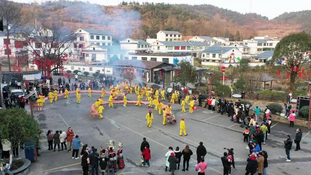 春节期间,金华镇翁井村舞龙民俗文化表演吸引众多游客前往观看