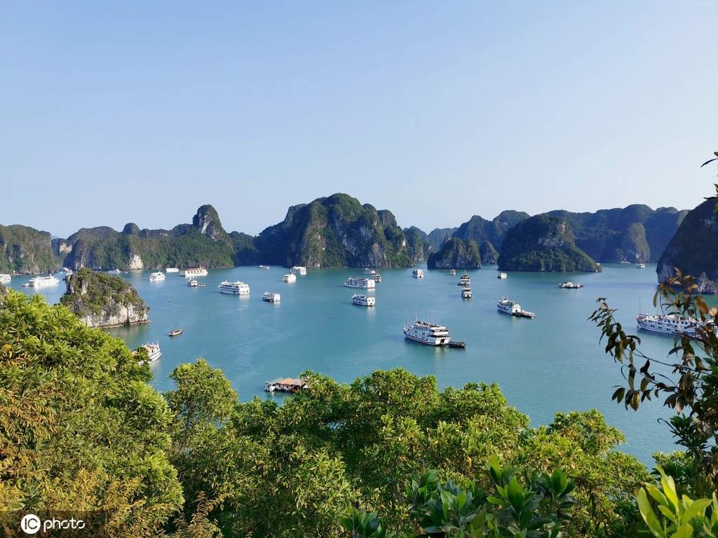 越南下龙湾,下龙湾位于越南广宁省下龙市,占地约1553平方千米,山海风光秀丽迷人,景色似桂林山水,闻名遐迩,为旅游胜地,有“海上桂林”的美称。