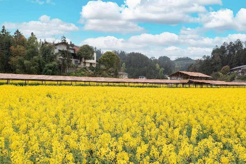 独具特色的玻璃光伏连廊未来感十足、金灿灿的油菜花海竞相绽放、连绵不绝的樱花落英缤纷……网红摄影达人三五成群,深入田间地头,或休闲漫步,沉醉其中,或拿出手机,定格美好。