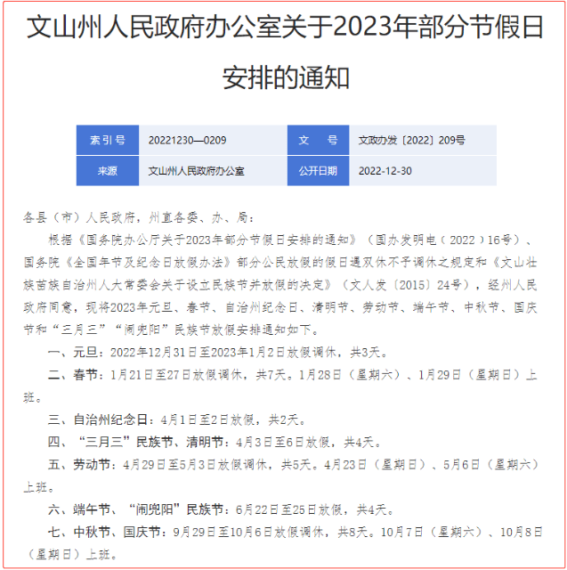 本月初,云南文山州等地刚度过“三月三”民族节,按照文山州人民政府办公室发布的《关于2023年部分节假日安排的通知》,本月初的清明节,当地和“三月三”民族节合并在一起,4月3日至6日放假,也是4天假期。
