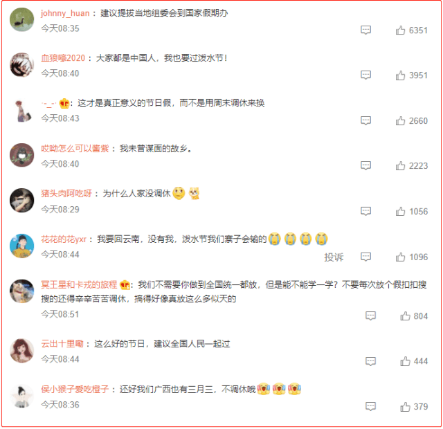相比“泼水节放假信息”引来羡慕声一片,都是放假,大家对五一放假的安排似乎“颇有微词”。