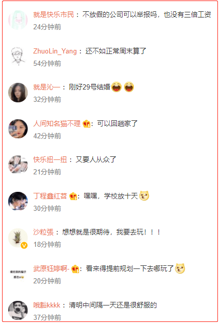 也有网友吐槽放假“抠抠搜搜”:东拼西凑硬放五天,前贴后补实际一天。
