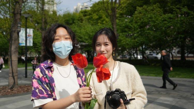 据小陈回忆,距离上一次来到静安雕塑公园已过去多年,自己的母亲就是一位养花爱好者,回去以后会和母亲请教请教如何让郁金香开得更久一点。
