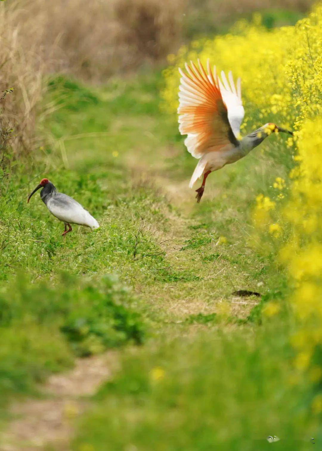 朱鹮飞过油菜花海,春满洋县静候你的到来!