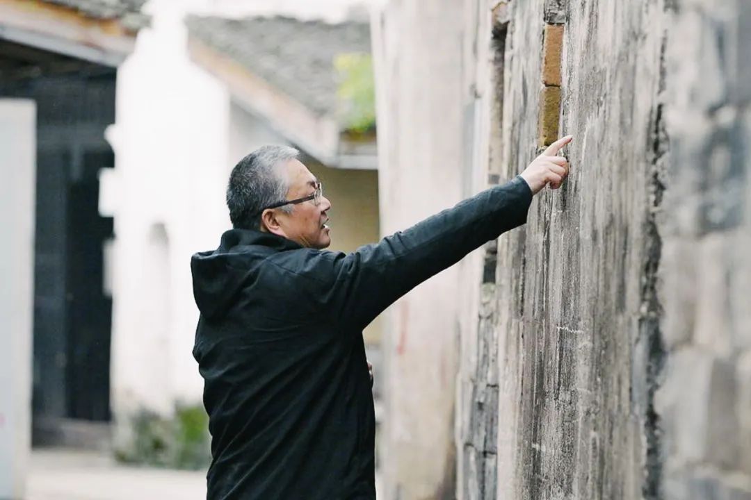 王澍带我们去看一个老房子,是他临安博物馆的设计灵感,结果外墙有一段出于保护,被水泥糊上了,他转了半天,看了又看,终于忍不住问一旁的村支书“你能不能悄悄帮我把这水泥扒下来啊”