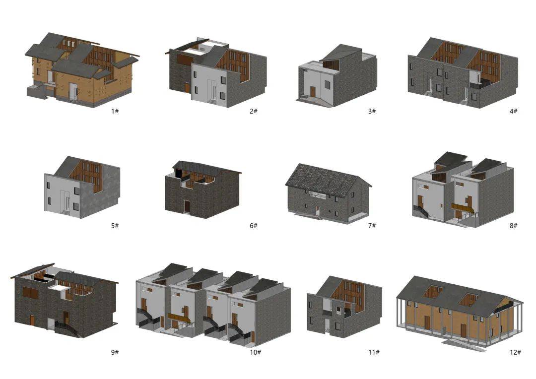 在新村落,王澍用做研究的方式,设计了8个建筑类型,再通过材料的使用上的变化,出现了一共24个变体。