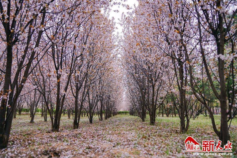 风有信,如期而来;花不误,迎风而开。眼下,在风光旖旎的秦安县凤山生态文化公园,远看草色青、柳色黄,粉的、白的、红的花一团团、一簇簇交错在一起。绿树成林、百花娇艳,与古色古香的亭台楼阁、奇石石湖水交相辉映,犹如一幅色彩缤纷的油画。