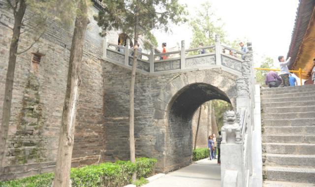 图为有着“空中庭院”之称的清凉台巧妙的曲拱。桥下通人,桥上建寺。拾级而上,就是白马寺的胜境。