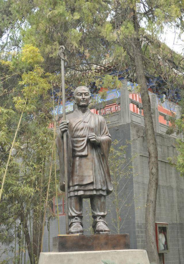 图为寺内的玄奘法师铜像。玄奘为探究佛教各派学说分歧,于贞观元年一人西行五万里,历经艰辛到达印度佛教中心那烂陀寺取真经。前后十七年学遍了当时的大小乘各种学说,共带回佛舍利150粒、佛像7尊、经论657部,并长期从事翻译佛经的工作。玄奘及其弟子共译出佛典75部、1335卷。