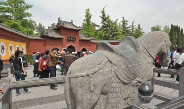 图为洛阳白马寺门前的石白马,古寺因大唐玄奘法师去西方取经的白马得名,白马寺也因此成为中国佛教的祖庭。千年古刹白马寺虽然历经了千年的风霜,但是依旧辉煌,游人络绎不绝。