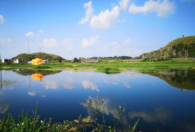 在家门口有一个小湖泊,这个小湖泊倒像是一个高原澡泽地,湖水不深、水草杂陈,由于远离污染,水质相当清澈。时不时会有鹭鸶、白鹤、黑顶鹤前来捕捉游离在水面上,水草间的小鱼儿。在蓝天白云的倒映之下,这里形成了一个天然的天空之镜,看上去相当美丽。