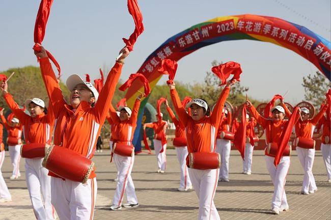人民网兰州4月9日电(记者高翔)4月8日,“彩虹张掖·乐游甘州”2023花游季系列活动启动仪式在甘肃省张掖市润泉湖公园举行。