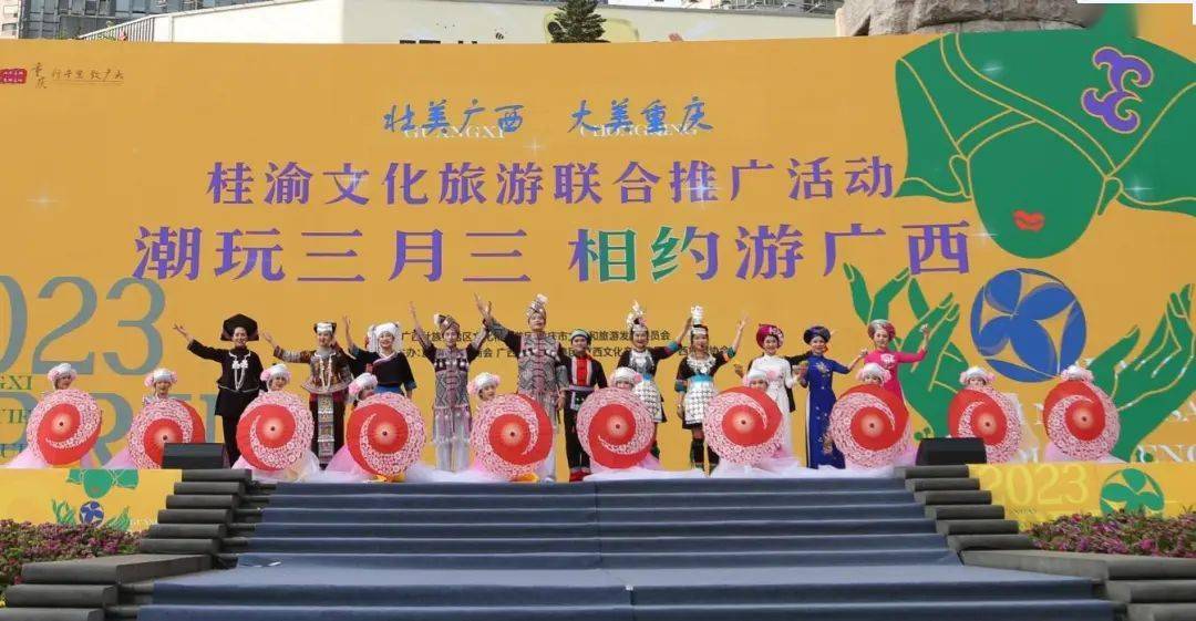 4月9日,由自治区文化和旅游厅与重庆市文化和旅游发展委员会联合主办的“壮美广西 大美重庆”桂渝文化旅游联合推广活动在重庆市江北区观音桥步行街举行,热情邀请重庆游客到广西共度“壮族三月三·八桂嘉年华”。