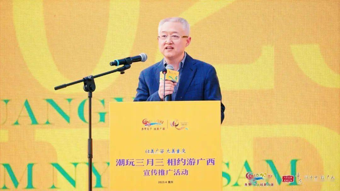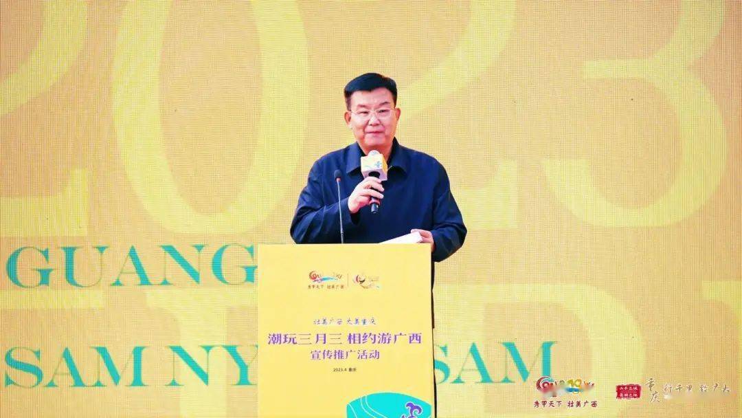 自治区文化和旅游厅党组书记甘霖,重庆市文化和旅游发展委员会党委书记、主任冉华章出席活动并致辞。自治区文化和旅游厅副厅长郑艺,重庆市文化和旅游发展委员会副主任秦定波,重庆市广西商会、广西旅游发展集团、广西旅游协会以及各市文化和旅游行政管理部门、文旅企业代表等参加活动。