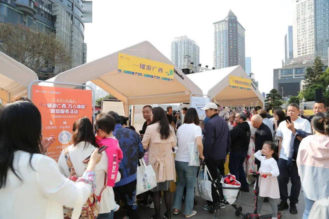 广西14个设区市及广西旅游发展集团、北部湾(广西)旅游联盟精心准备的特色旅游产品、非遗文创产品、旅游纪念品等展品,琳琅满目、种类繁多,吸引了众多市民前来咨询了解。