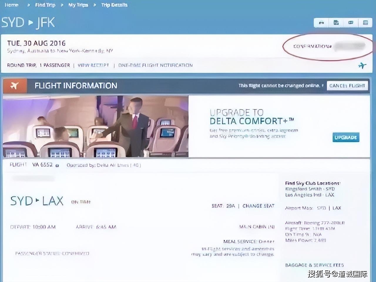 他用自己购买的登机牌上面的电子票号和旅客姓名登陆了美国的Delta航空的官网。