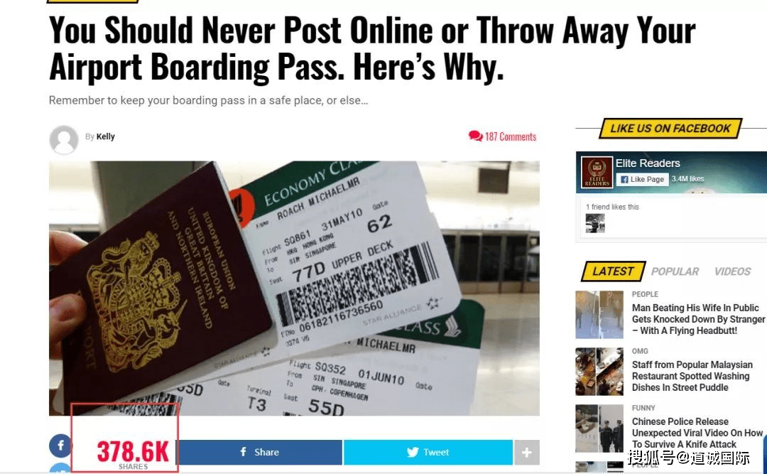 为了能让更多的人意识到问题的严重性,多家外媒新闻也及时跟进,浏览量达到10万+,分享人数37万+...可见有多少人还不知道登机牌背后所隐藏的危险!