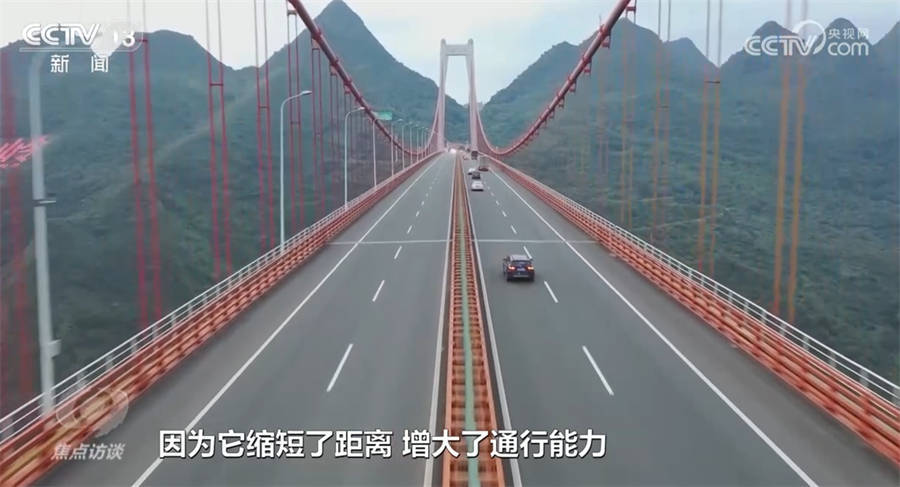 贵州现代物流产业集团董事长任仁:“贵州的万桥飞架,缩短了距离,增大了通行能力,对物流运行效率的提升非常重大。在六盘水,北盘江第一高桥支撑了东西向大通道的快速建设。在遵义,乌江特大桥解决向北走最重要的通道走廊。往东走,有清水河特大桥。”