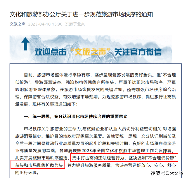 今日,文化和旅游部办公厅关于进一步规范旅游市场秩序的通知。