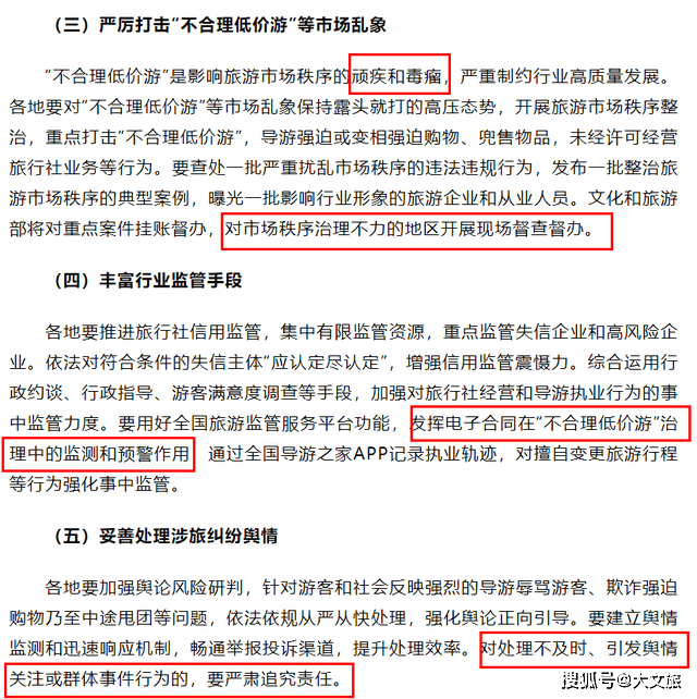 各地要加强舆论风险研判,针对游客和社会反映强烈的导游辱骂游客、欺诈强迫购物乃至中途甩团等问题,依法依规从严从快处理,强化舆论正向引导。要建立舆情监测和迅速响应机制,畅通举报投诉渠道,提升处理效率。对处理不及时、引发舆情关注或群体事件行为的,要严肃追究责任。