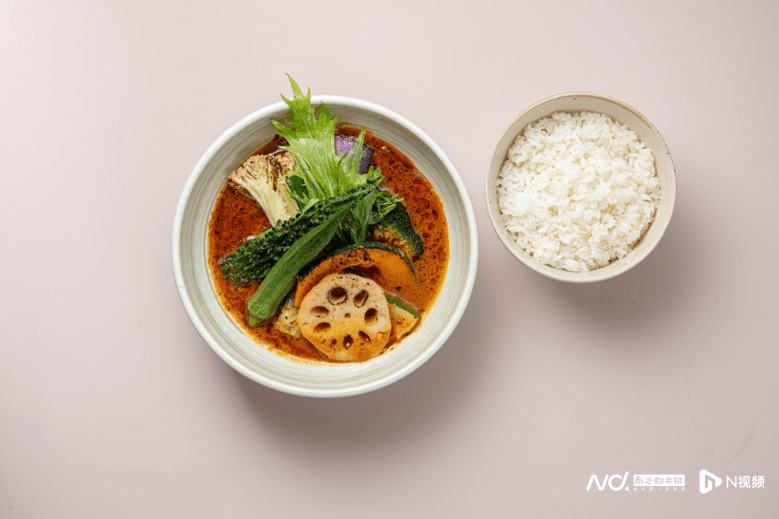 野菜汤咖喱配饭将野菜略为烤香,再人正宗日式汤咖喱烹煮,既保留了蔬菜原色,亦令整个菜式颜色丰富悦目。玄米茶柠檬苏打用日本玄米茶作为主角,吉谷舍kikusan将其自制成玄米茶糖浆,配以鲜柠檬,味道清淡而清新。