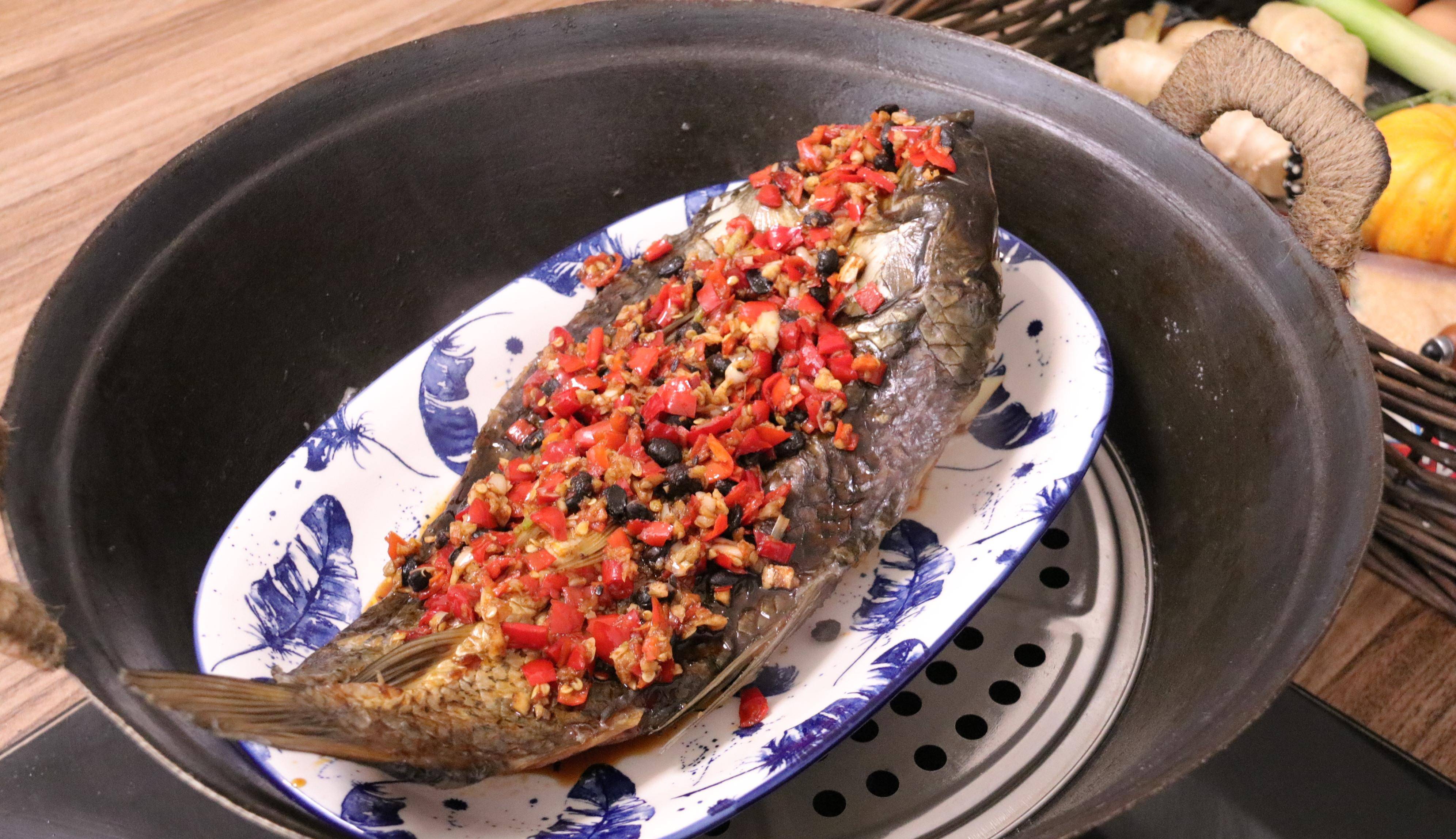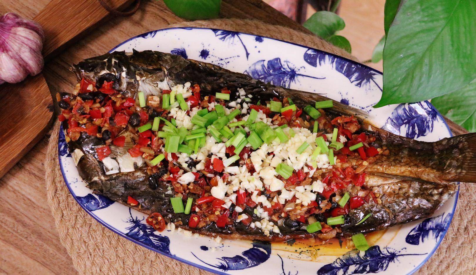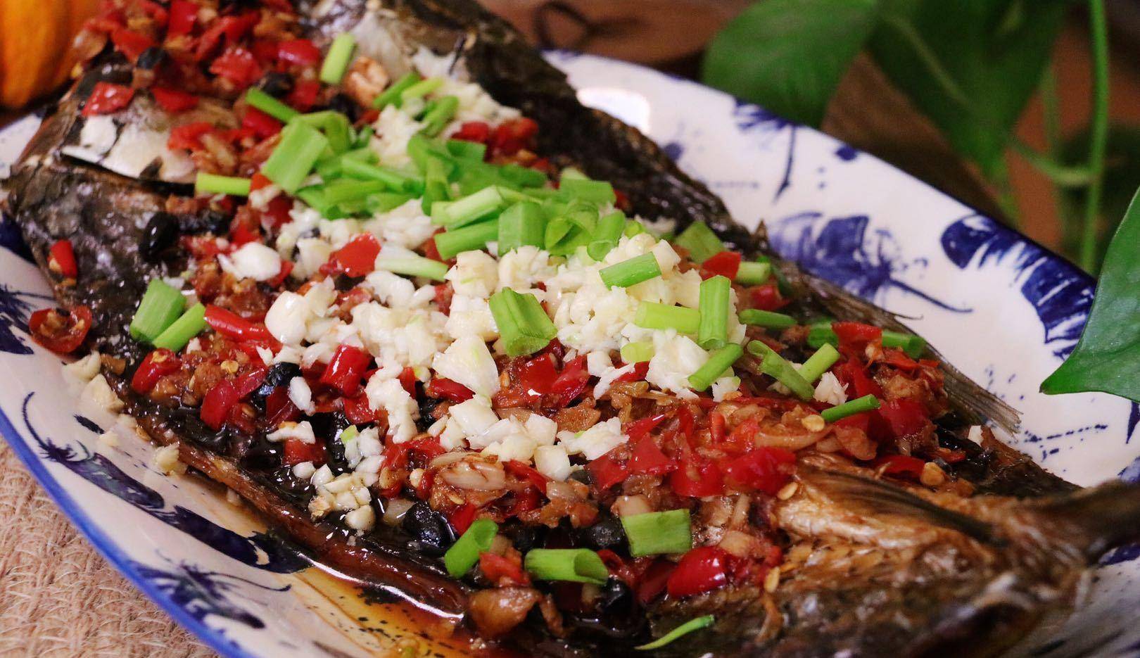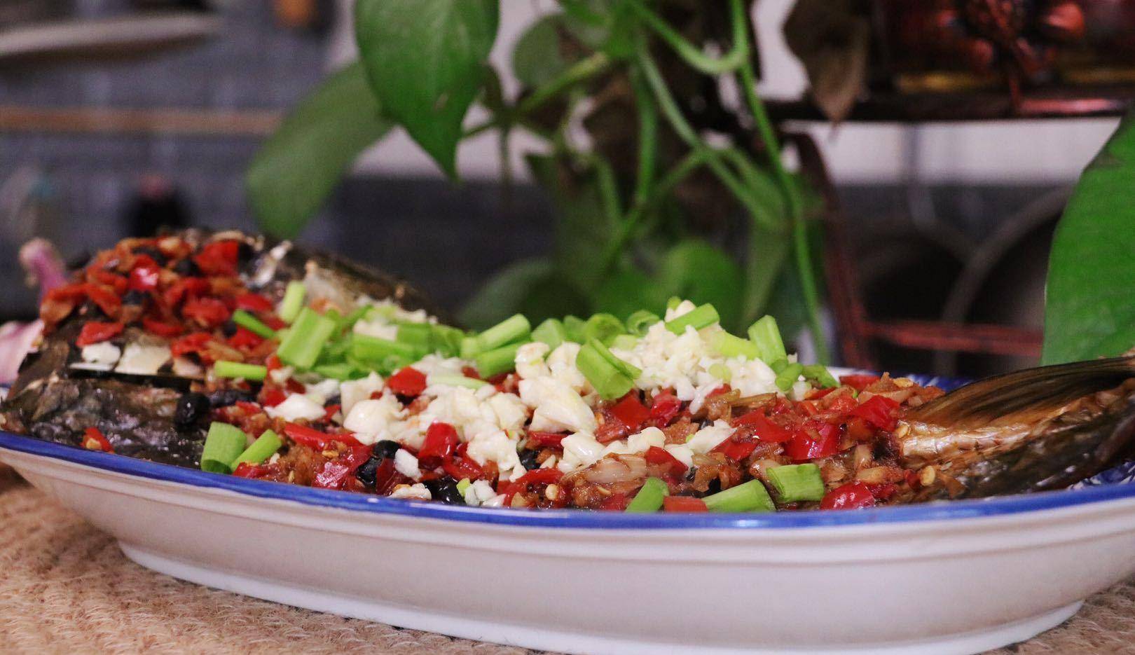 【食材】:1条腊鱼、50g剁椒、10g豆豉、5g生姜、30g蒜子、食用油、少许蒸鱼豉油、少许小葱。