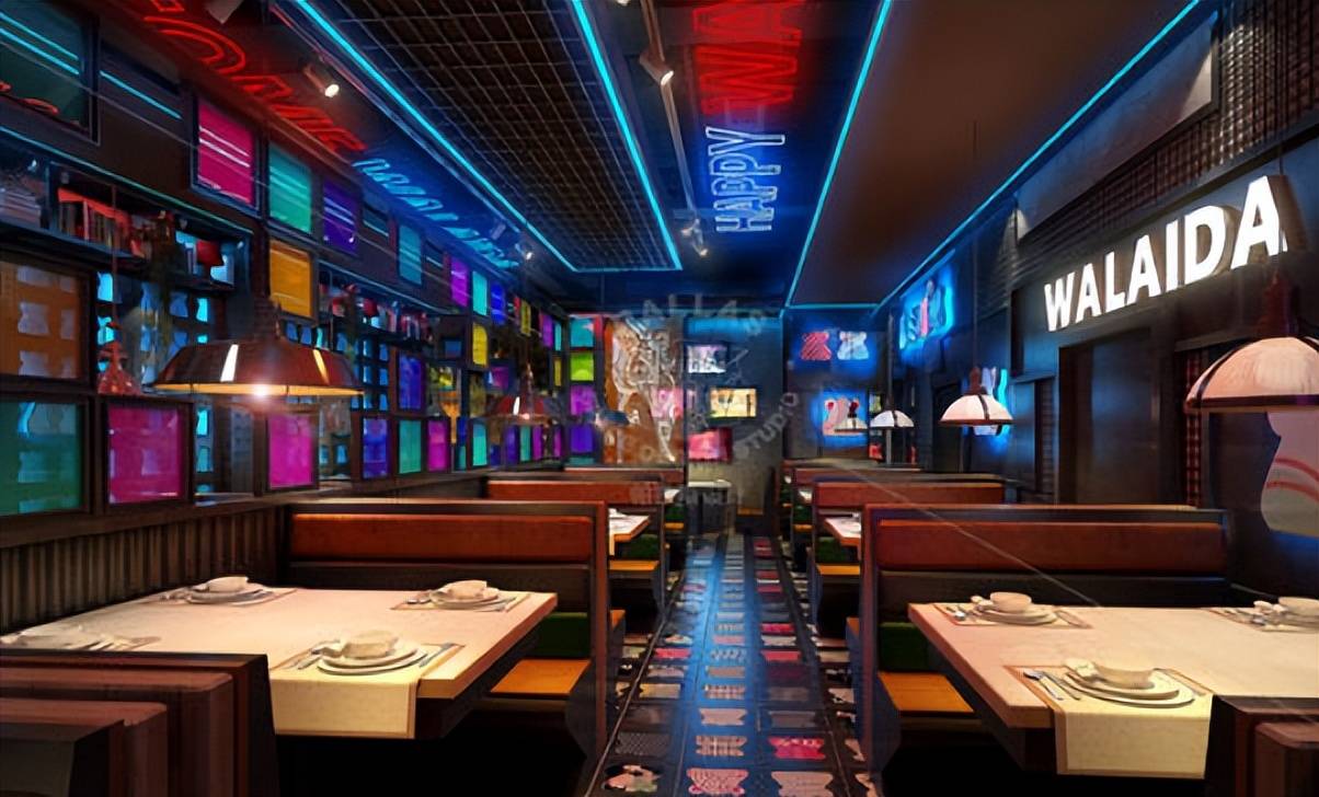 在品牌塑造方面,推出了五种设计风格。包括工业风、酷炫风、简约风、黑暗风、以及科技星球风。由于蛙来哒的受众群体是90后,因此在设计风格,也是满足90后更加喜爱热闹解压放松的环境,通过不同的空间升级来找到新的创新亮点。