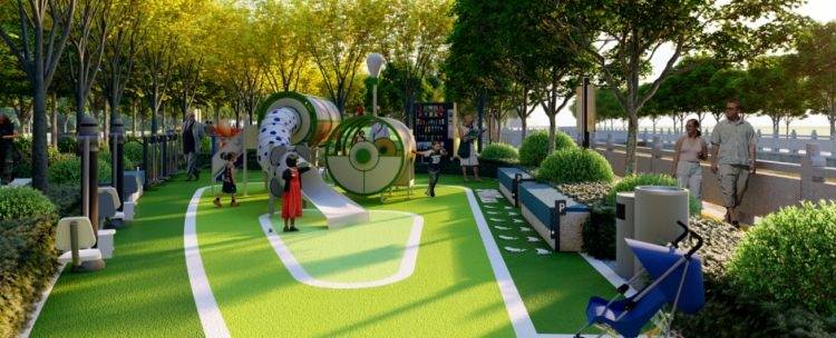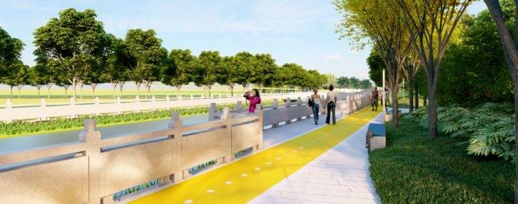 据了解,该口袋公园的占地面积约5800平方米,由东西两地块串联而成。公园东侧将设置儿童、成人活动健身设施;西侧将打造阳光草坪,沿河区域建亲水栈道。整个公园将铺设弧形健身步道,方便居民休闲活动。