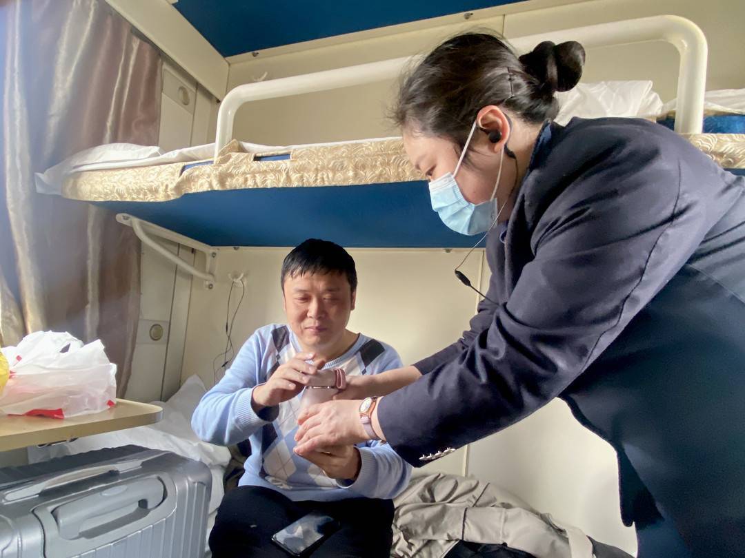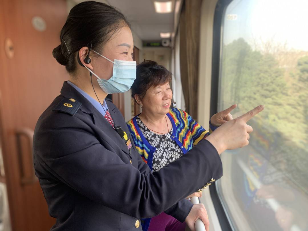 为全面做好该趟旅游专列服务工作,成都局集团在成都西站开辟了专用进站通道和候车区域,安排了青年志愿者为游客做好乘车指引工作。同时,针对中老年游客居多的特点,四川成都国际商旅集团有限公司和成都客运段广州车队在列车上全程配备了丰富经验的乘务员、导游和医疗保障人员,让游客的出行安心、舒心、放心。