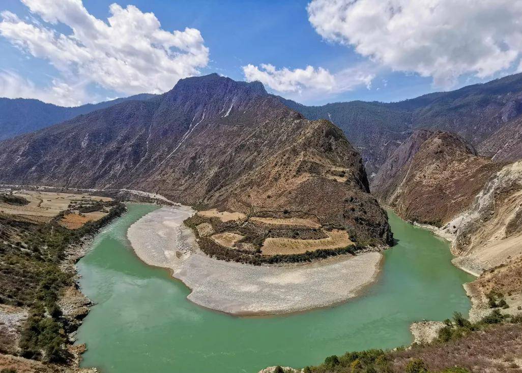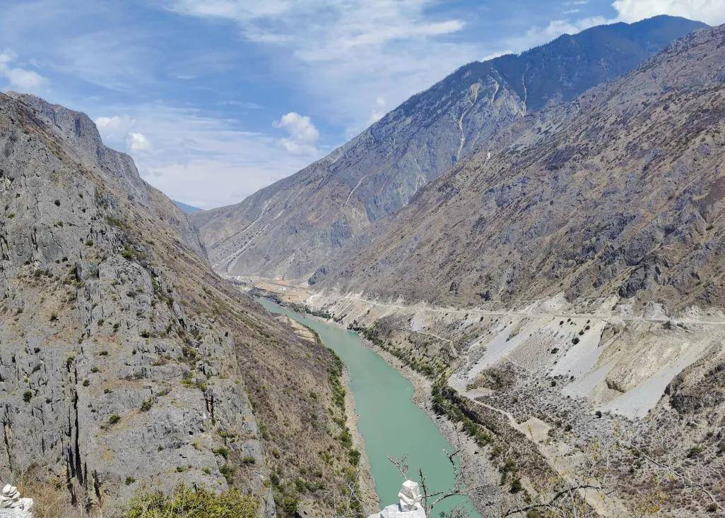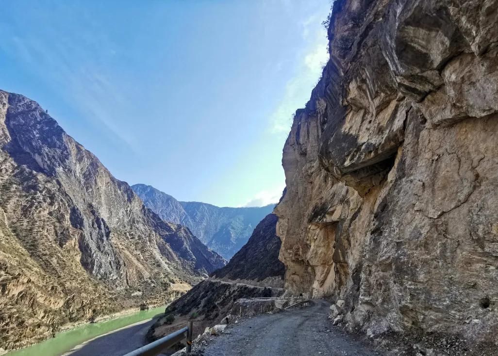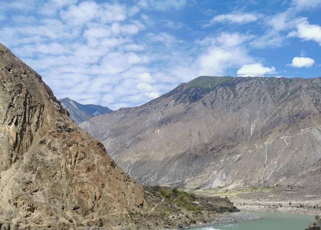 相较于丙察察云南段,进藏后除了路变烂外,景色也由原始森林变成了低矮灌木,缺少水汽的加持,晴天的山路车过一身灰,难受至极,只能厚厚地围上头巾背对山坡大口吸气。在这样的环境下另一件难捱的事是缺水,背的两瓶水说喝完就喝完,只留了浅浅一层以防万一。
