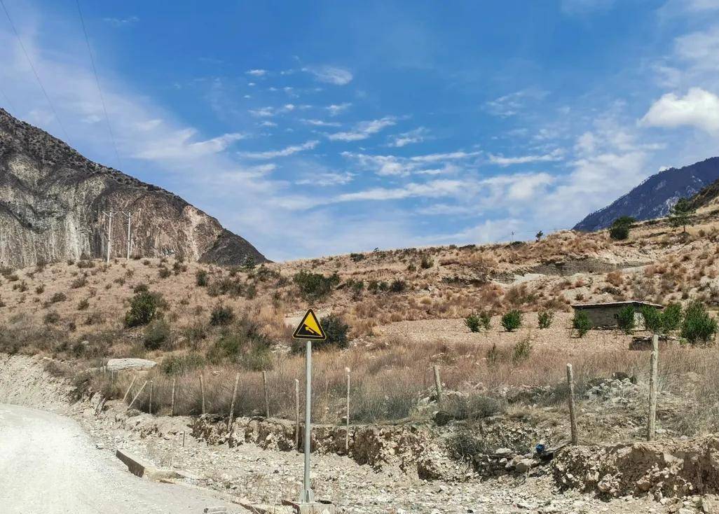 一口气徒了九公里后路过扎恩村,昨天摩托大哥说的没开门的小卖部就在这里,口渴难耐,只能求助村民,虽语言不通,比划一番后大娘欣然把我领进屋让我下包休息,她则往两个空瓶里灌水,接过水来我也没有客气,几口便干完一瓶。