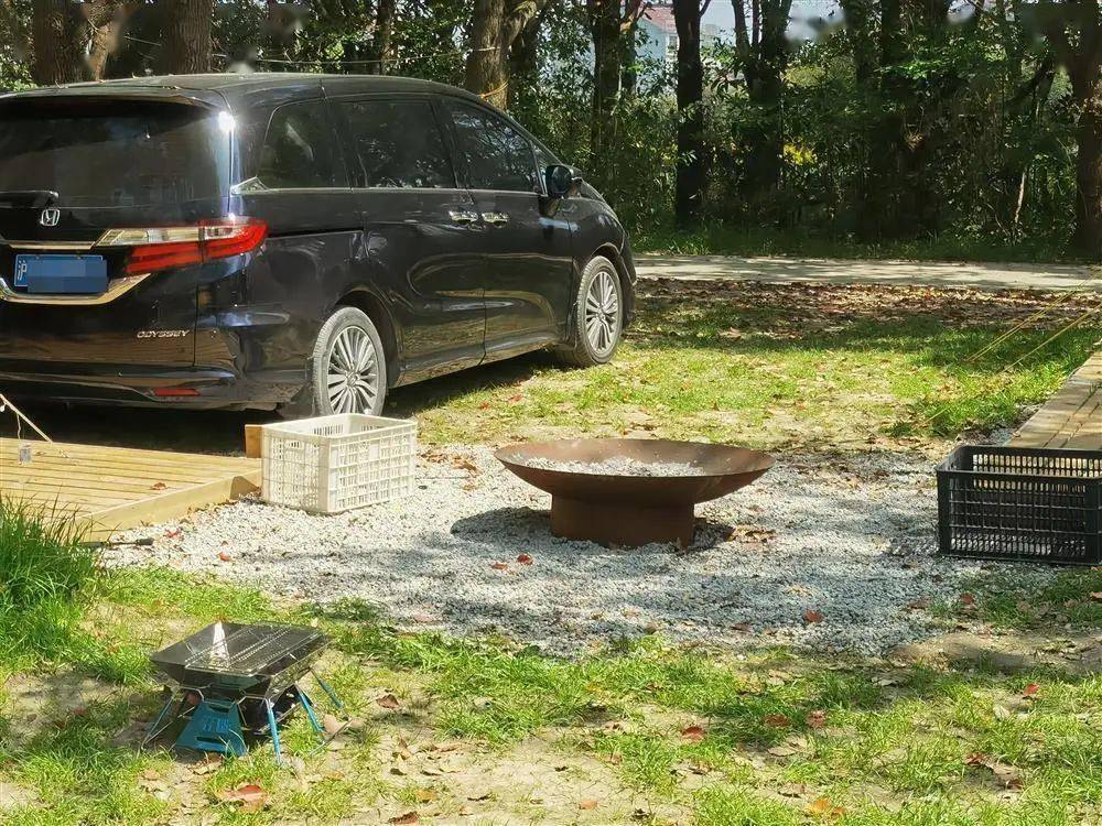 露营地里水电“齐全”。粗壮的黑色电缆线从树木枝丫中穿过,接入树根部铁皮电箱里的插座,供露营者用拖线板接出使用;露营地通道两侧摆放了多个移动卫生间和水槽,为露营者提供洗漱和如厕服务;露营地北侧,越过一座水泥小桥,还有一幢四合院式的建筑,可为露营者提供热水淋浴。露营地经营者告诉记者, 营地按照营位的不同,收取168元至198元每人的营位费。帐篷基本为自备,但若实在没有,也可以从经营者处租用。至于餐饮,可以自备熟食野餐,也可以现场烧烤制作,但需露营者自带食材,露营地可提供木炭等其他补给,或干脆通过点外卖解决。