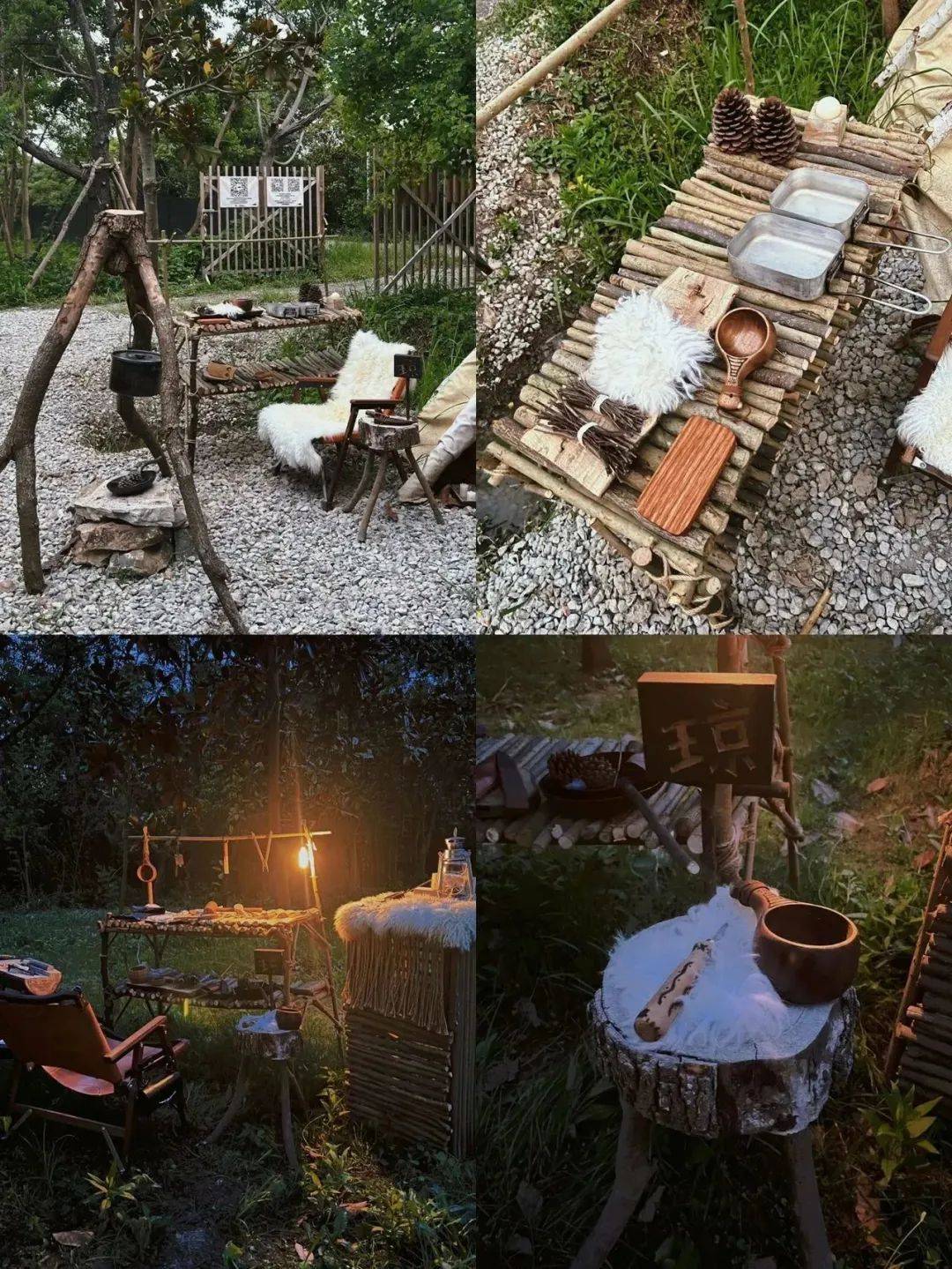同时,这里也会不定期举办BC(bush craft丛林技能)相关课程培训。2023年,营地增加了全套BC(bush craft丛林技能)露营帐篷体验,包括帐篷、桌椅、炉子、床、睡袋等全套装备。