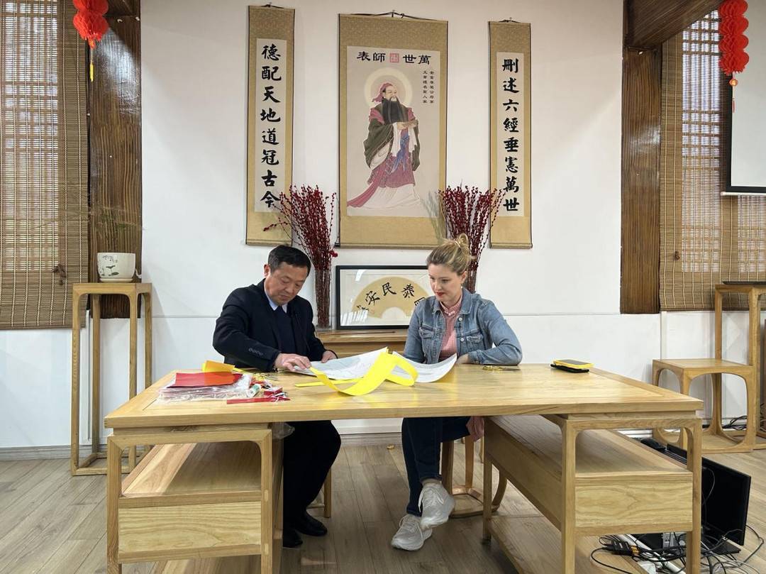 川剧变脸、“资阳河”高腔......夜幕降临,资阳雁江区保和镇晏家坝村,一场视觉盛宴正在上演,台下的Elyse Ribbons连连鼓掌。此外,她还在雁江区东峰剪纸传承人刘绪阳的带领下,现场学起了剪纸,一张黄色的卡纸在手上裁剪几次,不一会儿,一个“福”字就诞生了。“剪纸是一项让人很投入的事情,我今天太有成就感了。”Elyse Ribbons高兴地说道。