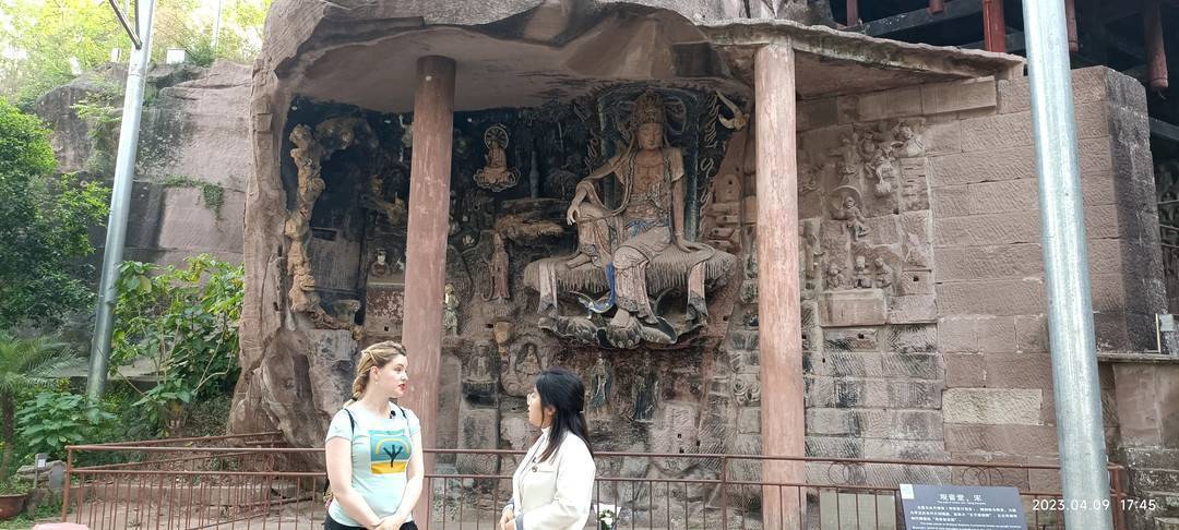 “没想到在资阳还有这么多年前的精美石刻雕像。”在安岳圆觉洞景区,释迦牟尼佛、莲花手观音、净瓶观音等三尊石刻造像依次排列,整体制作精良,纹路细腻,栩栩如生,Elyse Ribbons对此赞不绝口,希望以后有更多机会来到这里,“资阳真的是一座充满了惊喜的城市,不管是科技还是文化都蕴含着巨大的魅力,这里值得被更多的外国朋友了解。”