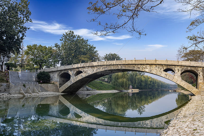 赵州桥:赵州桥位于石家庄市南郊,始建于隋代,历经唐、宋、元、明、清等朝代的修缮。它是中国古代建筑史上的一座重要的石拱桥,也是世界上现存的最古老的石拱桥之一。它建于公元605年,跨过了滹沱河,历经了1400多年的风雨洗礼,至今仍然完好无损。赵州桥是中国古代桥梁建筑的杰出代表,也是石家庄的标志性建筑。