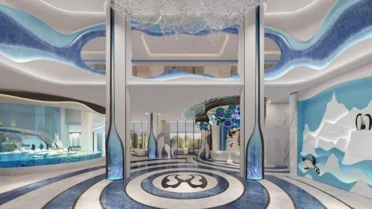 酒店定位为海洋风格、企鹅主题的亲子型酒店,由上海金桥临港综合区投资开发有限公司投资建造,规划建筑面积约为4.3万平方米,其中地上建筑面积约3万平方米。酒店建筑共10层,其中3至10层为客房层,可提供372间度假套房,每层客房选用一种企鹅作为主题元素,如跳崖企鹅、帽带企鹅、帝企鹅、王企鹅等,并根据热带企鹅、寒带企鹅划分2个方向,分别以暖色和冷色作为客房走道和卫生间的设计。除了海洋主题客房外,酒店还有企鹅展示区、儿童游乐区、全日餐厅等配套设施。