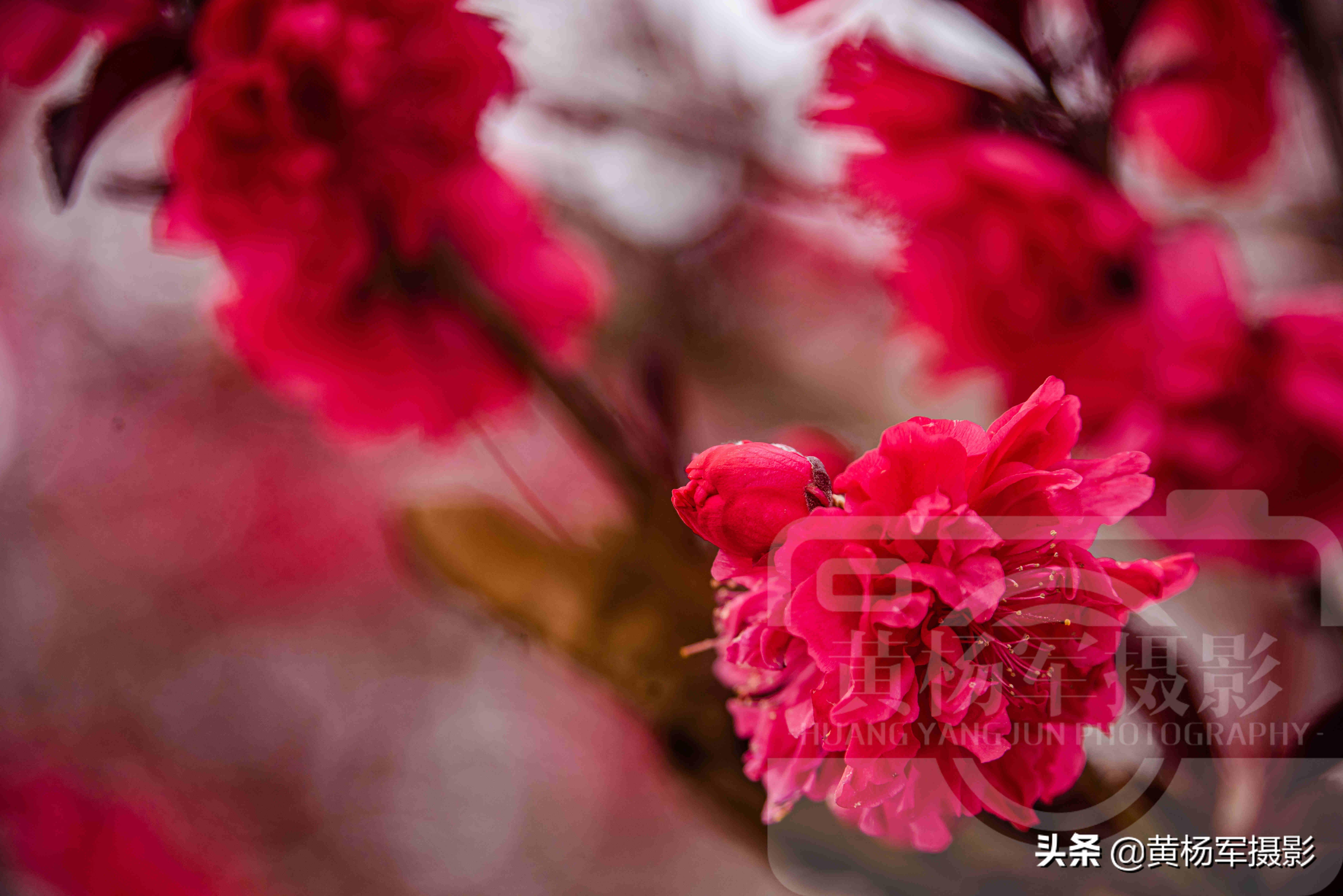 碧桃花在阳光风雨里显得妖艳动人,碧桃花