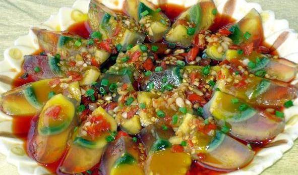 第三道菜很另类,是凉拌皮蛋。我第一次看到有人用这菜拌米饭还是在湖南出差的时候,看一位妹子点了一盘凉拌皮蛋,配米饭,感觉她吃起来特别香的样子。不知道又没人也一样喜欢这个。