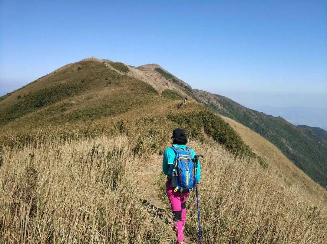 10:30 开始徒步登山,进入登山径,此段路未经开发,为驴友走出来的原始小路,沿途需攀登斜坡,穿越草丛,务必穿长袖衣裤、遮阳帽、手套,建议带登山杖、护膝;