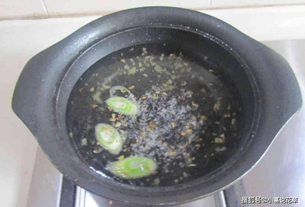 2、锅中放少许油,下葱、姜、蒜爆香;