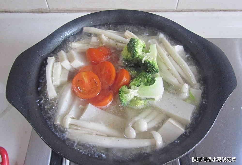 Tips:1.家里有肉汤最好。如果没有,将葱、姜、蒜放入锅中,然后加水炖;3.西兰花和圣女果都可以为菜肴增色。