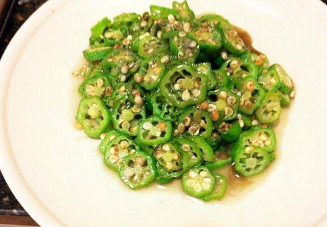 蚝油秋葵:秋葵的外观有一点像青辣椒,拥有十分分明的棱角,同时还拥有山药一般的粘液,秋葵里面含有丰富的维生素、维生素以及胡萝卜素,可以有效明目,促进身体、骨骼的发育。这道菜口感顺滑,味道很不错。
