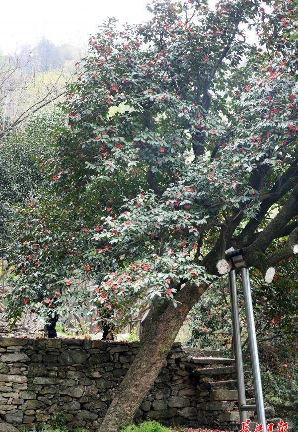 记者了解到,古树周围的山茶树,是1985年景区从福建引进种植的,当时共引进了300余株,树龄3至5年,都是人工培育的重瓣品种。