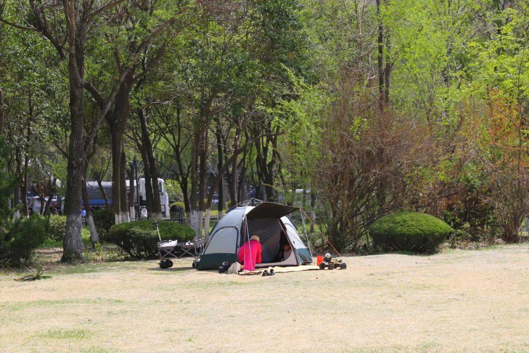 “这是遛娃的好地方,不用出城就可以享受大自然的乐趣,小朋友很喜欢这里,绿地旁边还有娱乐设施,玩累了就可以到帐篷里休息。”家住新城嘉园的李女士告诉记者,“这处共享绿地就在家门口,不用走远就能露营很是方便。”