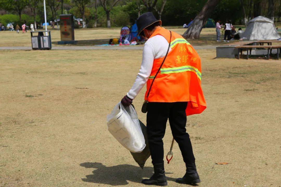 记者看到,在这片绿地有保洁人员值班,他们拿着夹子和袋子不停地巡逻,捡拾垃圾,保持绿地干净整洁,及时制止不文明现象。