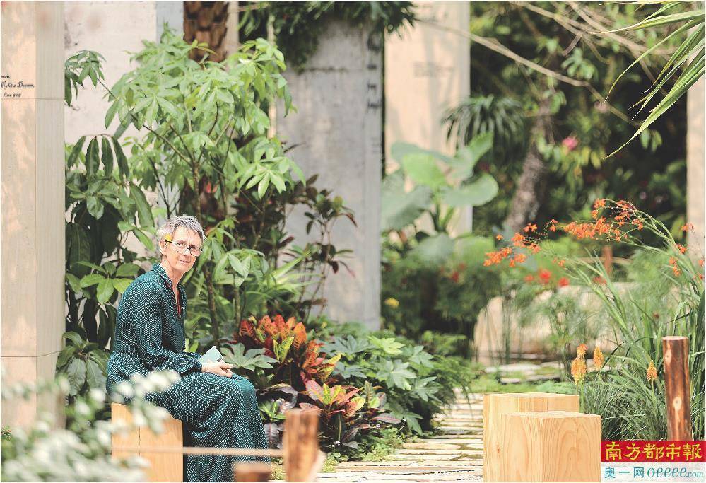 英国设计师Sarah Eberle与她的花园作品《仲夏夜之梦》。本届花展的国际花园数量创下新高。