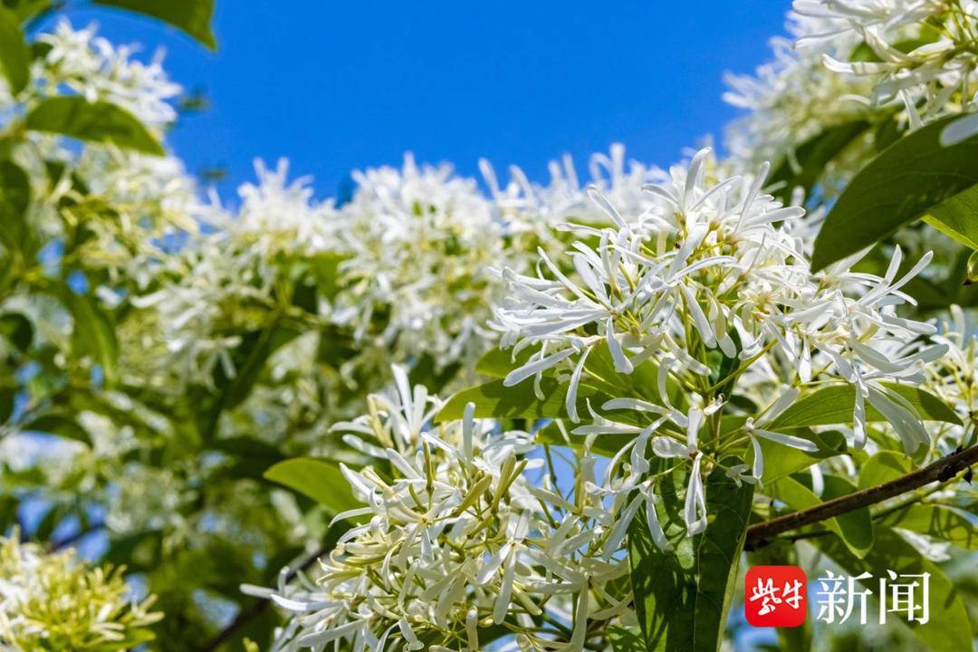此外,玄武湖景区内的国家二级保护植物流苏树也迎来了盛花期,在梁洲、金陵盆景园、情侣园等区域,流苏树花满枝头,如云似雪,犹如白雪压枝,因此流苏树也被称为“四月雪”。